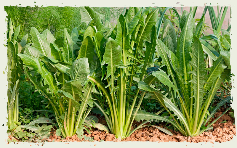 La achicoria aporta muy bajas calorías y brinda saciedad por su alto contenido de agua y fibra. El color verde se debe a la presencia de la clorofila. Aporta potasio, también ácido fólico.