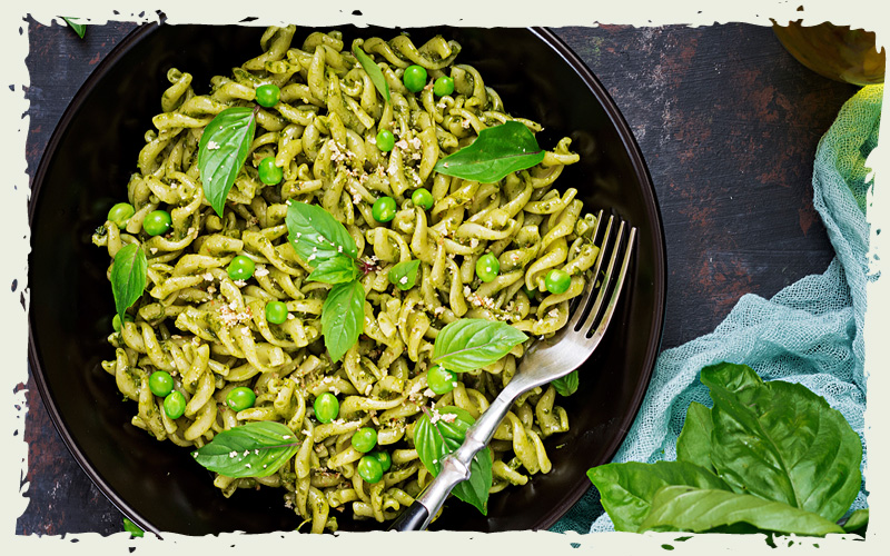 Se puede consumir fresca o seca para aderezar ensaladas, sopas de verduras, guisos, salsas y para acompañar platos de pasta, como es el caso del pesto italiano que la lleva como condimento principal. Entre las elaboraciones culinarias más características en las que interviene la albahaca como ingrediente, figuran: berenjenas a la parmesana, pasta o pizza con tomate y albahaca, así como todas aquellas recetas en las que interviene la salsa "pesto". Puede agregarse también al aceite de oliva para otorgarle sabor y así aderezar ensaladas.