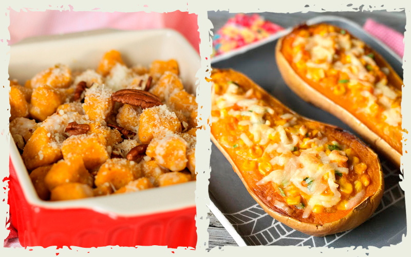 La calabaza aporta principalmente caroteno, sustancia que favorece la formación de vitamina A y tiene efecto antioxidante. Buena fuente de vitaminas C, ácido fólico y potasio.