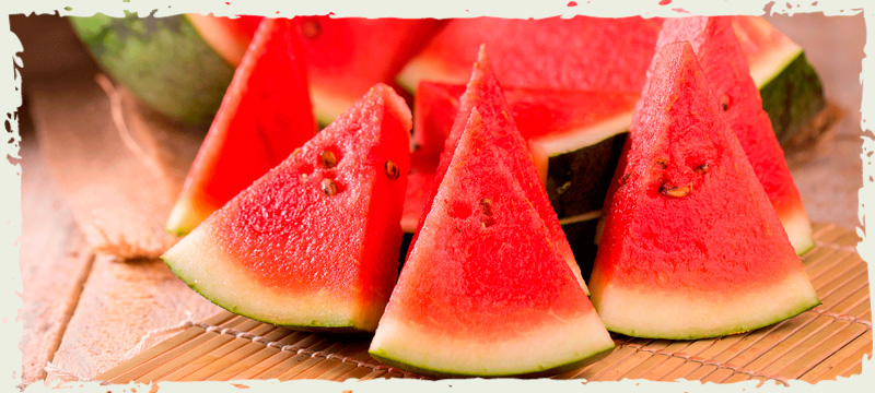 La sandía es baja en calorías, libre de sodio. Además es una buena fuente de vitamina C, y aporta mucha cantidad de agua y fibra.
